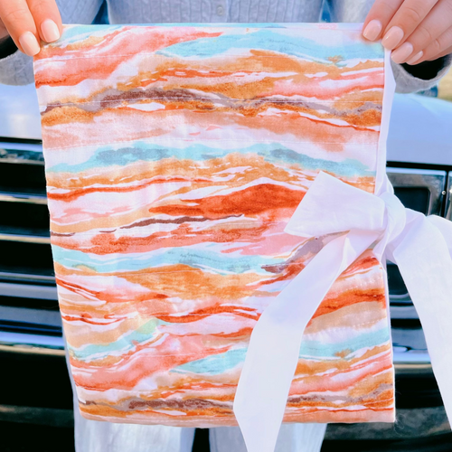 Made with heat protectant material to prevent melting or burning. Rolls up and fits perfect into hot tools bag!